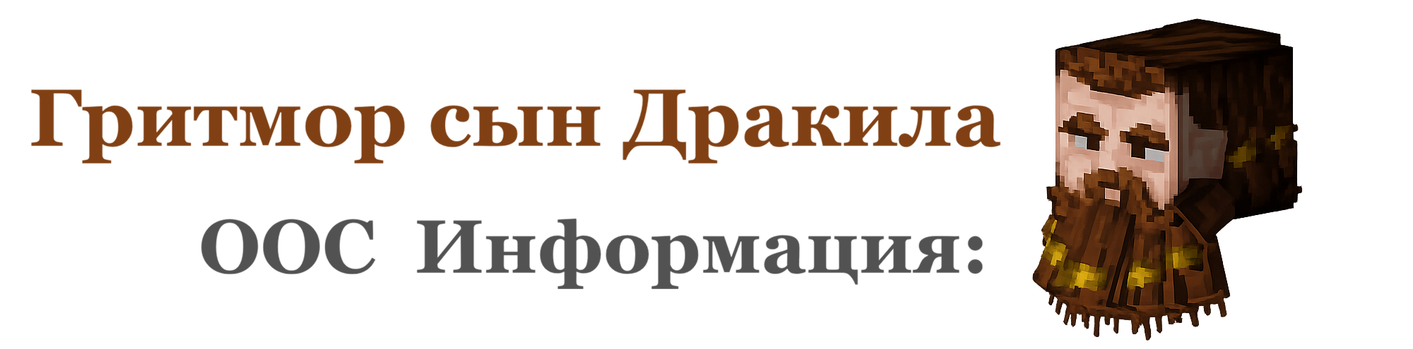 Внешний вид: Гротдорский мужчина средних лет, телосложение крепкое, плечи и сам он широкий, рост для чистокровного гротдора аномальный, а именно метр и шестьдесят сантиметров, на лице у него есть густая борода, обитая бронзовыми кольцами.