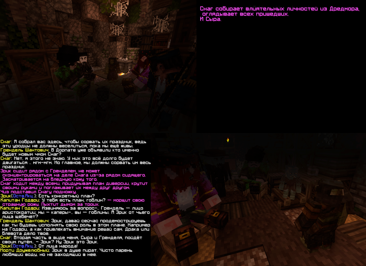 На днях Дредмором планировалась крупная операция по диверсии в Дорпате, все самые важные собрались в тихом местечке - начали обсуждать конкретный план по подрыву Хутора во время проведения турнира. Диверсия была проведена успешно, Эрик играл роль привлечения внимания, отвлекая всю стражу дракой на трибуне - его соратники в этот момент произвели подрыв бочек с алкоголем.