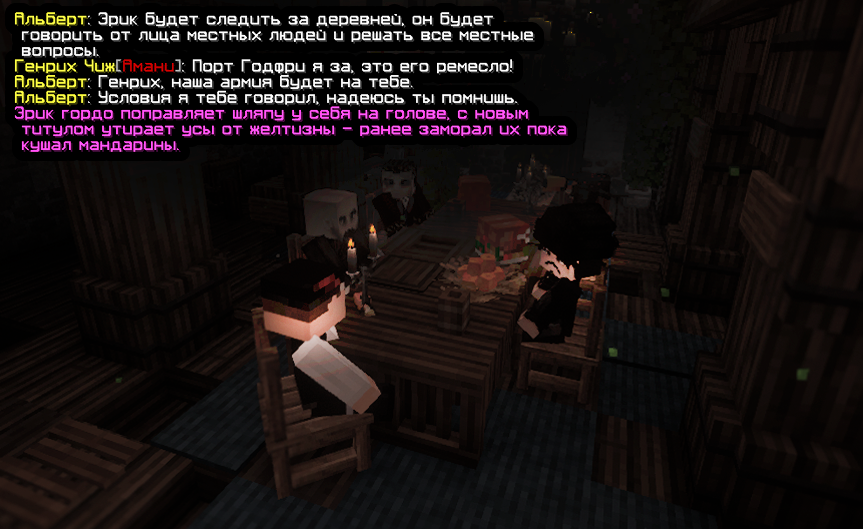 После мистической пропажи Лорда-Командующего с поселения Дредмор, его правая рука - Альберт, созвал срочный совет всех активных деятелей. В ходе чего всем были розданы обязанности и роли в поселении, Эрик же занял пост старейшины.