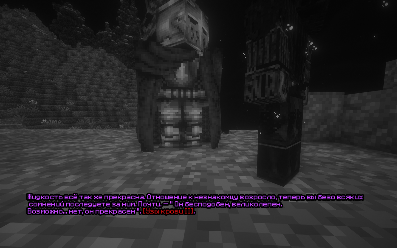 Этот день был трудным для него, дождавшись ночи когда те уйдут спать - он под покровом ночи проникнул на могилку старика, впервые и стал на удивление с тем разговаривать. Он поделился с ним со всеми трудностями, переживаниями. Просил прощения, но как и ожидалось в ответ была тишина. В один миг он заметил среди деревьев чей-то силуэт, похожий на лютоволка, от резкого приступа паники тот убежал обратно к себе.