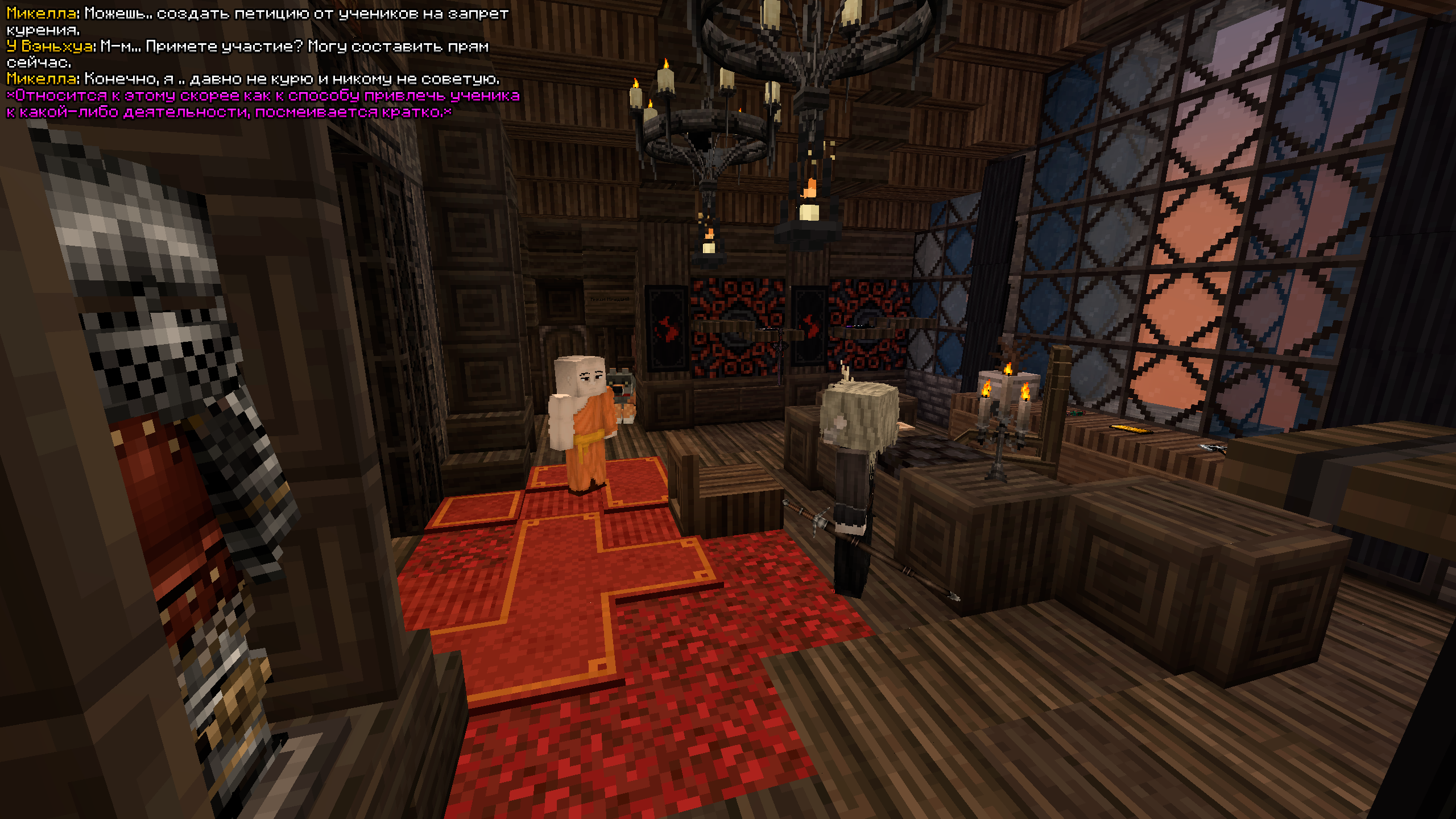 [Архивариус] – В библиотеке, что Вэньхуа так или иначе собирается организовать, — будет потаённый зал, скрытый от всех, кто не должен там находиться. В этом зале будет воедино собрана, отсортирована и систематизирована, вся добытая монахом, магическая литература. Вэньхуа же будет покровительствовать сию залу. Являться архивариусом этого места, хранителем знаний; держать постоянный контакт с людьми учёных направленностей, для поддержания актуальности литературы и её расширения. Проводить различные лекции посещающим данный зал, давать напутствия.