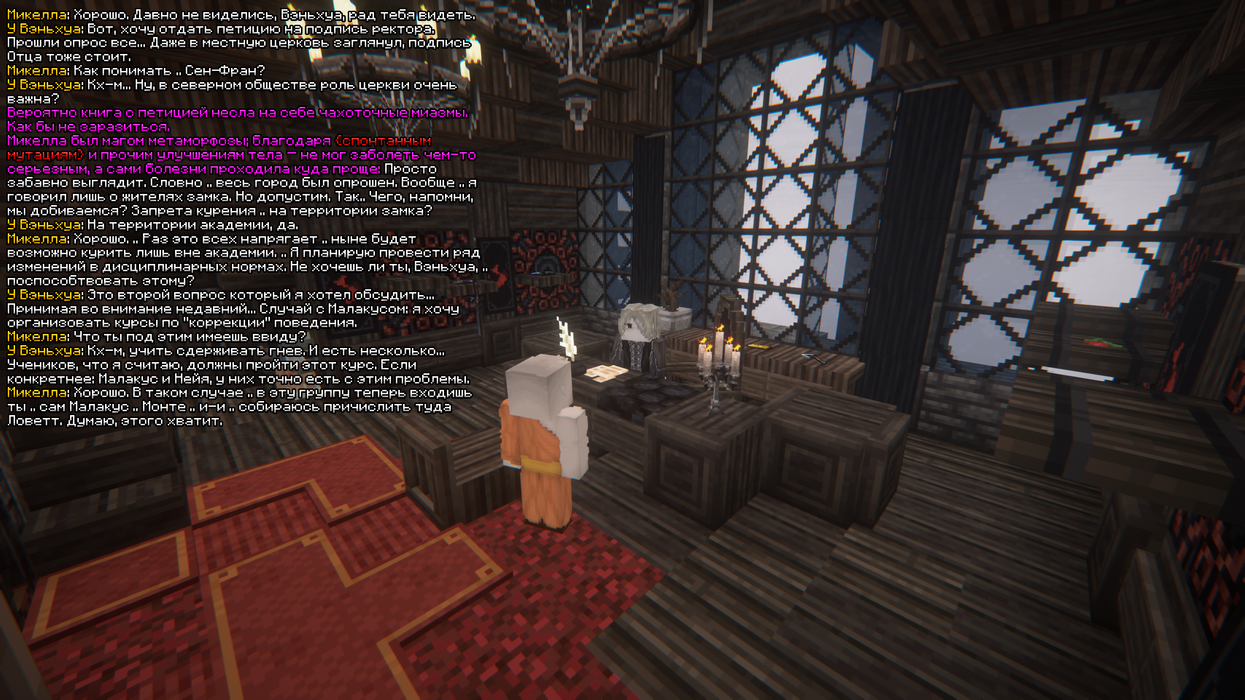 [Селекция, новый мир…] – Вэньхуа — монах пути перемен. И как монах он придерживается концепции баланса в мироздании. Это и станет его основной целью и движущей силой вперед, именно ради неё он будет стараться и развиваться. Теперь подробнее о ней самой. Лишь сама идея неравного распределения таких ресурсов как знания являются для него странным. И после реализации своей идеи великой библиотеки, он задастся вопросом: “А может ли он как-то исправить столь бедственное положение масс?”. И ответом будет эволюция, нет, — революция общества! Его фундаментальная перестройка, создания нового общества вместо старого и несправедливого. Его видение общества будет основано на балансе инь-ян, баланс в целом станет одним из основных критериев в большинстве сфер общества. Такое общество в своём корню хоть и будет содержать сословность, но заимеет и высокую социальную мобильность между этими сословиями, люди не будут узниками своего происхождения, своей фамилии. Идеология будет характеризоваться прагматизмом, рационализмом и преобладающим техническим развитием везде, где это возможно. Политическое устройство же будет представлено мягким авторитаризмом; правящие лица откажутся от массового применения насилия, для удержания режима, вместо чего будут использовать более тонкие, деликатные инструменты по управлению населением. Однако после этого встанет логичный вопрос: “Как это сделать?”. И тогда у Вэньхуа будет сразу два варианта, к которым он, вероятно, будет прибегать одновременно. Первый из которых устраивать ненасильственные протесты, митинги и прочие мероприятия нацеленные на саботаж действующей группы власть имущих (как Ганди). С помощью них можно будет достучаться до лидеров тех или иных политических фракций, чтобы они приняли меры, либо хотя бы выйти с ними на диалог. Дебаты в целом будут частой практикой, попытки переубедить правителей и направить их на верный путь Как раз тут ему и понадобится его врожденная дисциплина — астрология, с её помощью он не только сможет чувствовать эмоции окружающих, от чего и подход к ним будет найти проще, но буквально внушать их с помощью [Астральной библиотеки]. “Каким образом?”. Сидя за столом, Вэньхуа заранее подготовит небольшой предмет с записанными “верными мыслями” и будет незаметно подкидывать его своим собеседник, чтобы у тех в головах всплывали нужные ему мысли. Помимо этого, Вэньхуа, как человек, что избегает насилия — попросту найдёт себе единомышленников, среди которых могут быть как маги, так и простые люди, после чего начнёт возводить свою мечту воплоти с нуля. Им он будет рассказывать о своей идеологии, объяснить что хорошо, а что плохо. Грубо говоря воспитывать, после чего вместе с ними направляться на описанные выше протесты, ведь чем больше людей поддерживает его идею — тем больше влияния в глазах местных властителей он имеет, а следовательно и шансов что к его мнению будут прислушиваться больше. Естественно за своими последователя будет вестись некий надзор, маг будет проверять их память, дабы проверять верно ли они следуют его пути и указаниям, в самых крайних случаях, и скорее всего только по отношению к магам — будет стираться воспоминания. Происходить всё будет, если говорить о колдунах, на добровольной основе, с простыми людьми всё будет обставляться как сон или что-