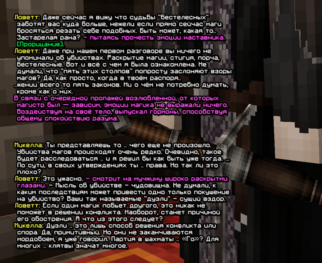 3) С получением [Скульптор плоти] как раз начнется основная игра, маг начинает активную деятельность, ведь теперь – никто кроме пары-тройки других магов не могут ему помешать, да и вряд ли станут пока он соответствует их ожиданиям, о своей анонимности и безопасности маг очень сильно беспокоиться, так что, будучи наученным на ошибках прошлого, он будет стараться усиливать свою скрытность как можно больше, скорее всего конечной целью в этом вопросе станет – артефакт, что позволял бы ему скрывать либо видоизменять своё ядро. Но до этого момента, впрочем, и после, он будет тем, кто никогда не показывает своего настоящего лица и личности в целом, постоянно появляясь в новом облике. Каждый новый – это тщательно продуманная маска, адаптированная к обстоятельствам, будь то влиятельный дворянин, учёный, маг, или простой путешественник. Скрытность – это не только защита, но и инструмент. Она позволяет ему свободно действовать в любом обществе, оставаясь незамеченным и избегая подозрений. На начальных этапах он выберет для себя роль наемника, готового выполнить самые разные поручения. Таким образом он будет постепенно увеличивать своё влияние и строить сеть полезных контактов, постепенно укрепляя своё положение как в магическом сообществе, так и среди простых смертных. Он будет принимать заказы от магов, фракций и т.п, сфера услуг же у него обширна: сбор информации - разведать, узнать секреты, похищения, саботаж, выкрасть что-нибудь, ну и конечно же изменение внешности, которое часто требуется другим магам.