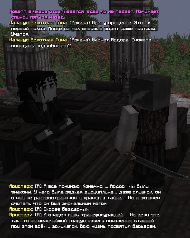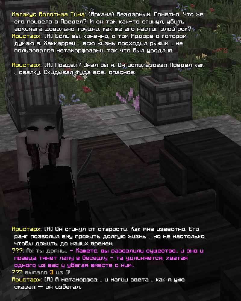 Склонив голову, Вейж прошёл в покои настоятеля. Он обратился к нему с вопросом, рассказал о всех своих странных чувствах и ощущениях на вчерашней практиках ушу. Послушник действительно переживал, что последующее происшествие в библиотеки могло быть связано с этим чувством. Однако вместо ожидаемых воодушевляющих слов или совета, он лишь увидел как лицо настоятеля сморщилось, будто в отвращении, после чего старик сделал странный жест и темнота.![]()
