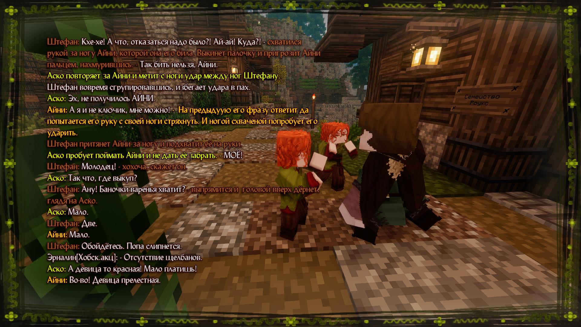 С обретением в виде хода собственных ножек, тех уже нельзя было удержать на одном месте дольше двух минут в неспящем виде. Задорный смех двойняшек покрывал людскую мрачность, и выводил на улыбку даже хмурых мужей. А их проделки... О тех всему люду было слышно, вспомнить только парочку. По свету утренней зари, те брали деревянные миски и ложки, и отбивная стройный бой, шастали по всей деревушке спозаранку будя засонь, иль пугая малых зверей.