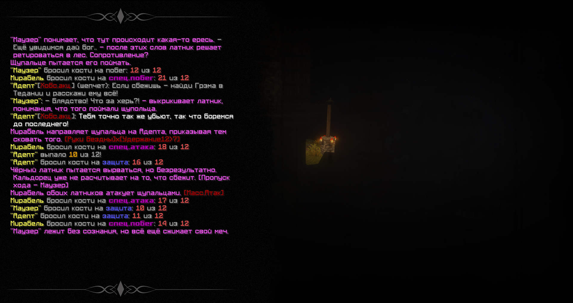 Ашура, подняв своё заплаканное лицо, увидел, как к нему приближались двое фигур, облачённых в кожаную броню. Опознать нападавших он не смог, из-за слезящихся глаз. Одна мысль у него промелькнула в голове, чётко и ясно, словно написанное жирным текстом на клочке пергамента "Беги".