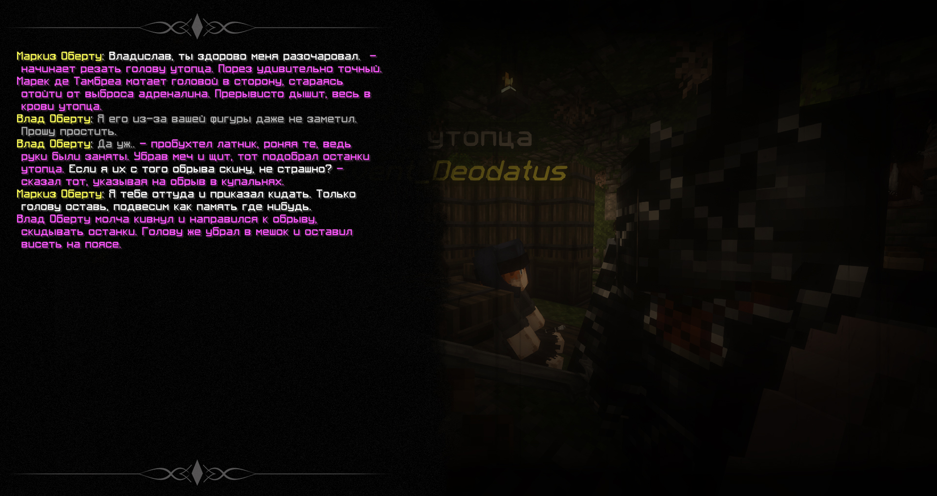 Подойдя к дороге, отряд принялся занимать свои позиции, готовясь к засаде. Все доставали своё оружие, предвкушая наживу. Но в нужное время караван не появился. Семя сомнения начало прорастать в бойцах, от чего все начали перешёптываться, уточняя, в какое время караван должен прибыть. Караван так и не прибыл в указанное время. Но пока никто не успел вслух выразить своё сомнение, на отряд грабителей осыпался град тяжёлых арбалетных болтов. Пока отряд не успел опомниться, что произошло, прилетел ещё один залп. Десятки грабителей падали замертво, а кто-то кричал "Это засада! Всем назад! Отступаем в лес!". Но в тот же момет из леса с криками выбежали гвардейцы, облачённые в латы.