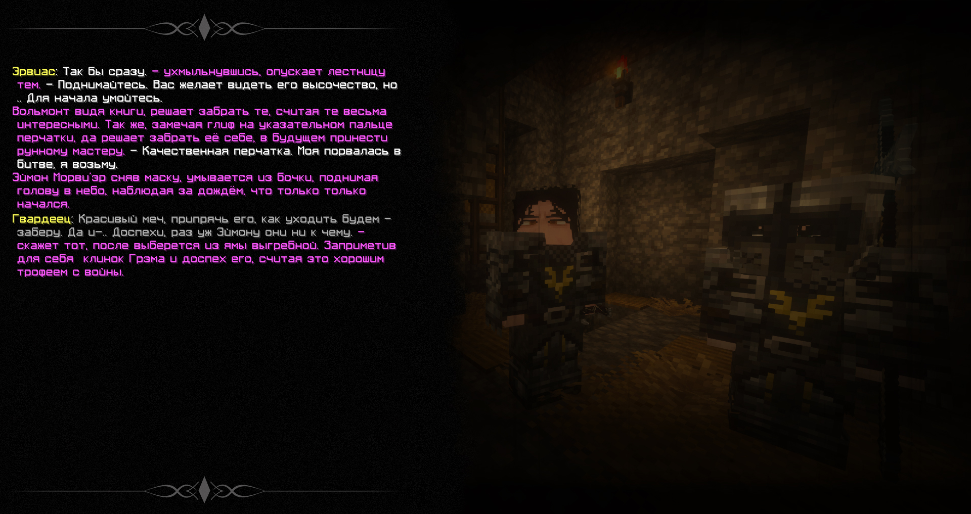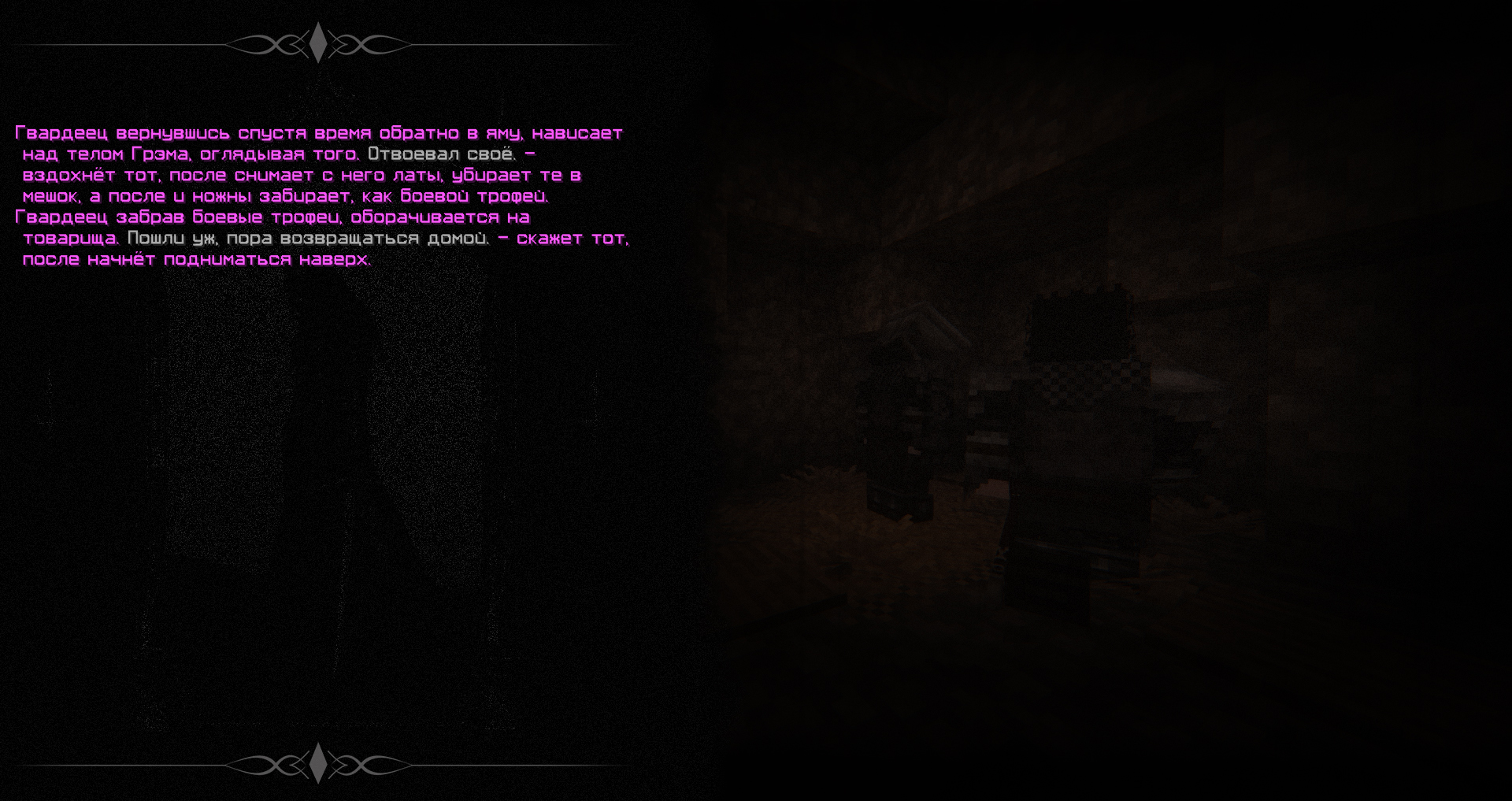 Подойдя к дороге, отряд принялся занимать свои позиции, готовясь к засаде. Все доставали своё оружие, предвкушая наживу. Но в нужное время караван не появился. Семя сомнения начало прорастать в бойцах, от чего все начали перешёптываться, уточняя, в какое время караван должен прибыть. Караван так и не прибыл в указанное время. Но пока никто не успел вслух выразить своё сомнение, на отряд грабителей осыпался град тяжёлых арбалетных болтов. Пока отряд не успел опомниться, что произошло, прилетел ещё один залп. Десятки грабителей падали замертво, а кто-то кричал "Это засада! Всем назад! Отступаем в лес!". Но в тот же момет из леса с криками выбежали гвардейцы, облачённые в латы.