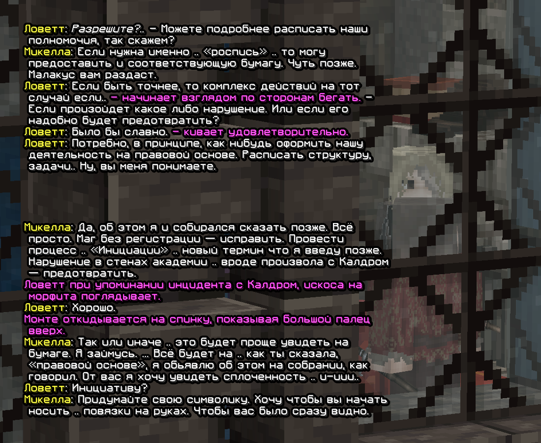 4) Постепенно к магу будет приходить осознание всех проблем системы, того, что бояться и что любят люди, и того насколько глубоко прогнила вся нынешняя система. Это станет для него переломным моментом, подтолкнув к идее создания новой, альтернативной системы управления. Для начала – что из себя представляет видение мага, которое сформировывается к этому моменту, на основе того, что он успел вычислить – он желает достичь идеального баланса, мира, основанного на равных возможностях, но с чётко расставленными для всех ограничениями, и понимает, что сам по себе сформироваться и существовать он не может, в связи с этим он считает, что всё должно находиться под контролем одной личности, системы, не важно, а так как главой этой системы является он, то следовательно она никогда и не отклонится от своего курса. Что он будет для этого делать? – Маг уже будет иметь представление о проблемах и пороках, которые становятся основными её проблемами. В первую очередь сила, так как по мнению мага она является одной из тех вещей что сильнее всего раскрепощают людей, то её ограничение будет первым шагом. Каждая независимая фигура, особенно наделённая знаниями или властью, представляет помеху. К сильным он так же относит не только буквально могущественных личностей, но и алхимиков, инженеров, рунников и подобных, именно они станут его первой опорой и теми, кому он будет стараться вбивать в голову свои идеи. Добиваться контроля над ними он будет разными способами, начиная от чего-то банального вроде – обещания защиты, внедрения страха или банальной сделкой на выгодных обоим сторонам условиях, заканчивая превращением в члена ХКХС или КСГТ, после чего, приходя к условному алхимику уже будет заключать с ним контракт. К чрезмерно сильным людям, что отказываются идти на контакт, он станет применять более тяжелые меры, наложить поток боли и постепенно подчинить кого-то себе, или же просто банально ослабить одним из заклинаний серии скульптор. Особое же негодование у него будут вызывать раздающие силу маги, расценивая её как великий дар, он считает, что чтобы его использовал обычный человек, это должен быть лучший из лучший, самый преданный из преданных, ведь мало кто справится с соблазнами что она дает. В тоже время, тем кто, наоборот, лишены силы – будут предоставляться ресурсы для развития и роста. Далее идет власть, тут подход будет схожий, к этому моменту маг уже будет иметь влияние в существующих фракциях, ну или же подконтрольных, благодаря потоку боли, персон, что так же могут иметь влияние, а вдоволь насмотревшись на всё те же проблемы системы он будет знать где и как её изменить, так что фокус будет браться на влияние на решения лидеров, дабы подтолкнуть их в нужную, по мнению мага, сторону, что может привести хоть к противостоянию двух сторон, или же создавать ситуации, демонстрирующие обществу порочность старой системы. Так же, важность равенства в магическом сообществе он видит, как неотъемлемую часть своей цели. Он станет помогать юным магам развиваться, как только сам окрепнет достаточно сильно, наставляя их на «верный» путь. А за сильными станет вести наблюдение, чтобы при необходимости вмешаться. Если кто-то из магов становится угрозой равновесию, маг готов противостоять даже им. Как понятно из вышеописанного он собирается выступать в роли неко