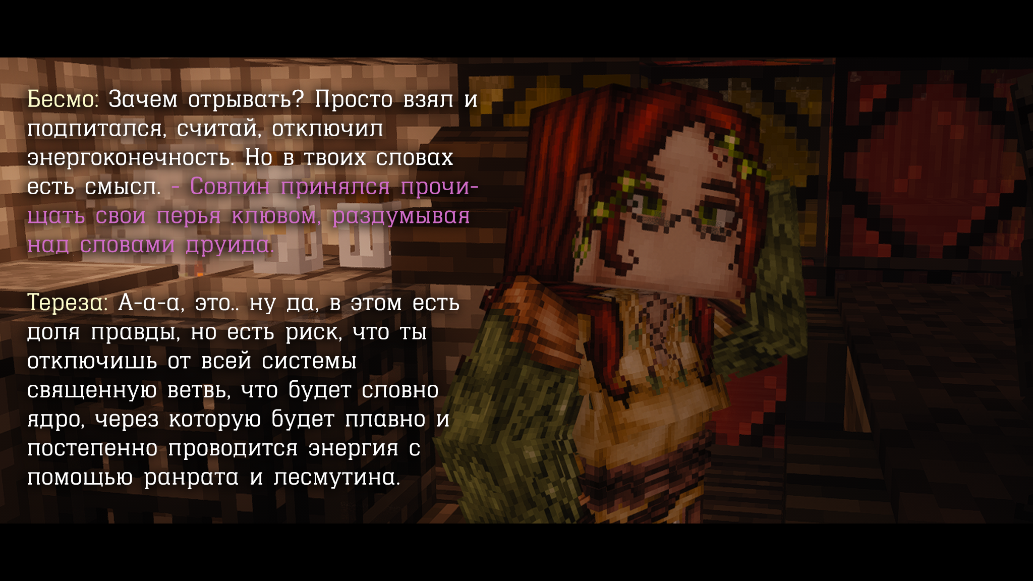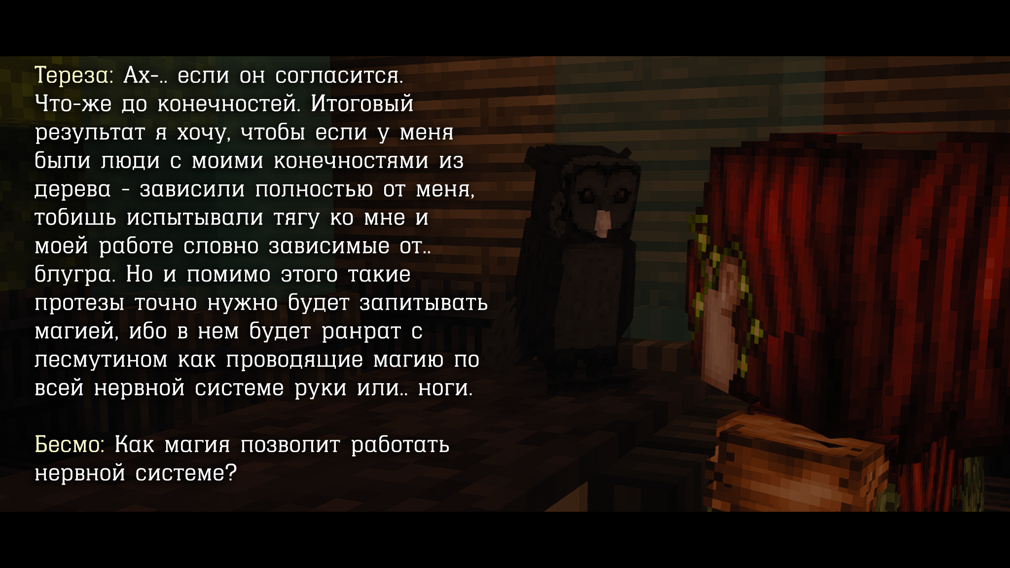 Её исследования будут направлены на магическую инженерию, но с уклоном на использование именно этой уникальной древесины. Она будет изучать физические и магические свойства священных деревьев, находя способы комбинировать их с магией для создания новых, уникальных артефактов и предметов. Священная древесина — это ключевой материал для её будущих разработок: