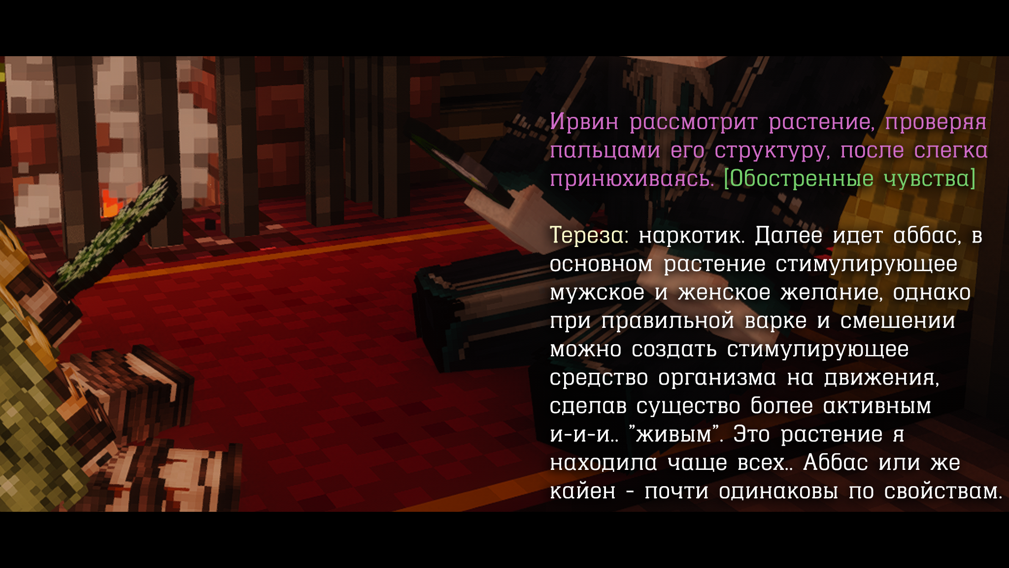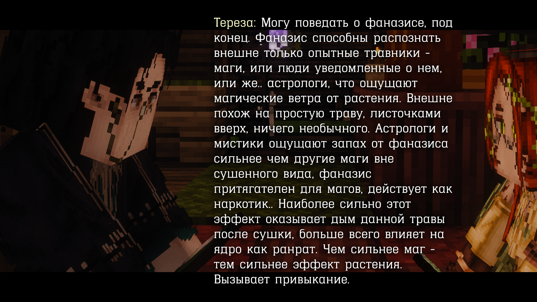 Заинтересовавшись различными травами Ирвин спросил о них у куда более опытном маге и травнике, что, на его счастье, была его наставницей. По итогу она даже рассказала о Фаназисе.