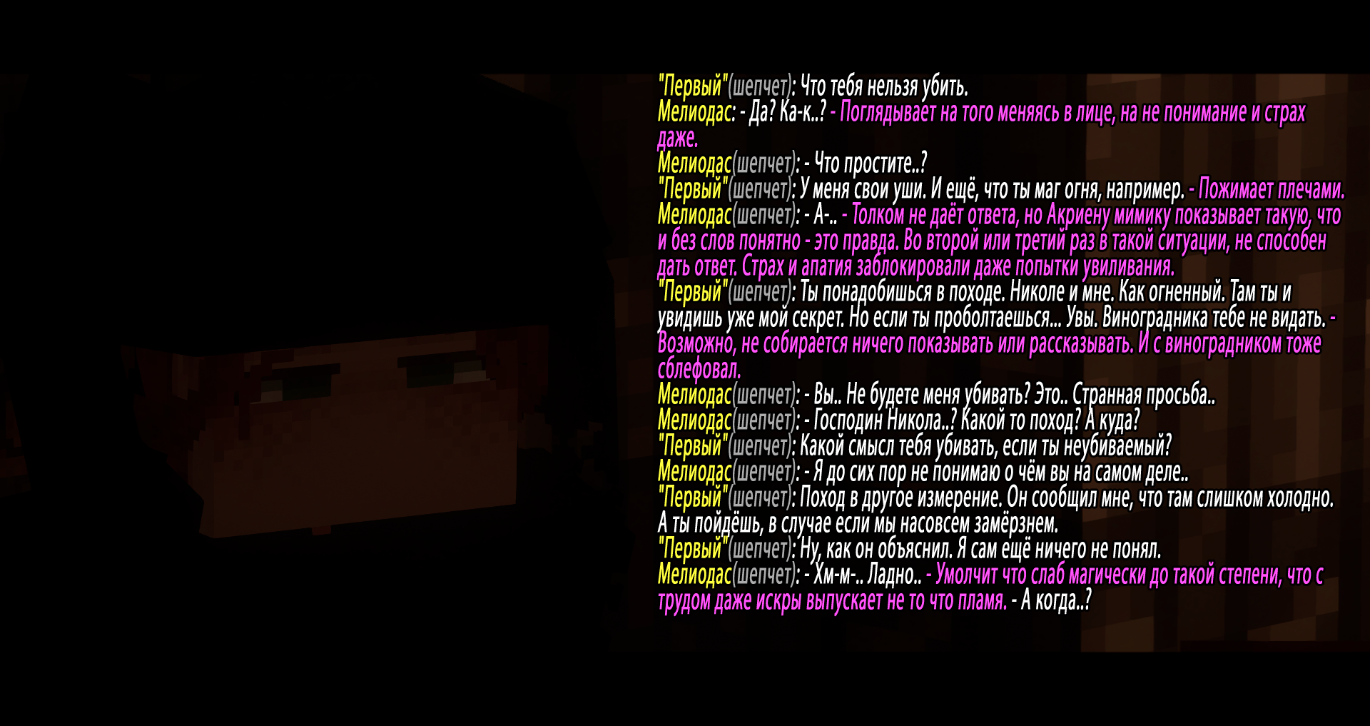Вообще жизнь в Пределе не показалась Меолидасу такой сложной? Во всяком случае потому, что здесь было очень и очень мало личностей и по правде сказать.. НУ ПРОСТО РАДОВАЛСЯ ОН ЭТОМУ, что он тут почти всегда единственный житель и пользуется дарами этих земель почти минимально, но не использует то, что даровалоась умами людей и этапами эволюций и улучшения, сохраняет девственность Предела. Правда, были моменты какие то где всё таки он был не единственным. Изученный вдоль и поперёк Предел открыл для него понятие что есть тут ещё свинолюды и некие пустынные жители. Которым и тем и тем в случае чего пакостил, то есть если видел то, что видел в тех или иных действах и внешних факторах корень зла со стороны своей идеологии и мировоззрения. Итак шло на протяжении семи восьми лет и да, буквально всё то он делал это жил, рос, справлялся сам как то и сохранял Предел девственно чистым от рук технологий и развития людей и нелюдей. Оставлял там не тронутыми тех кто жил с точки его идей прям как надо но всё равно следил и если по его мнение они переходили эти границы то устраивал поджоги, топил своими силами которых всё ещё боялся но решил использовать всё таки во благо своей идеи какие то важные места для развития и прочее, прочее, прочее. И пожалуй главный момент когда парень уже как бы дожил до настоящего момента, он решил что показывать себя буквально как ребёнка незнающего нежели напрямую нести свою мысль, будет в разы лучше оставаясь в тени эдакий Ночной Защитник Предела от рук людских, ведь этого всё равно никто не поймёт а идеалистов по уму разуму найдёт как-нибудь со временем, да и кажется совсем скоро.. А почему скоро? Да потому что активность колонистов в Пределе очень возросла и теперь надо хотя бы выйти в общество новое населяющее его новый дом да поглядеть что и кто вообще и где и как и куда и зачем и почему. Ну и на последок упоминание что хоть и частые ссоры семейные были, но Мелиодас не чёрствый кусок ублюдка и ночами плачет, грустит и лелеит моменты жизни с матерью и отцом но сделать, увы, с этим ничего уже не может.