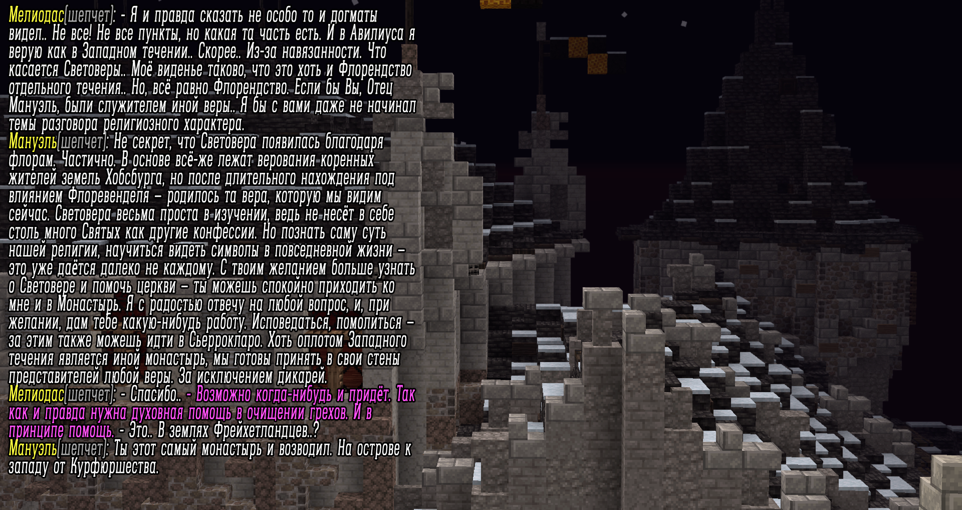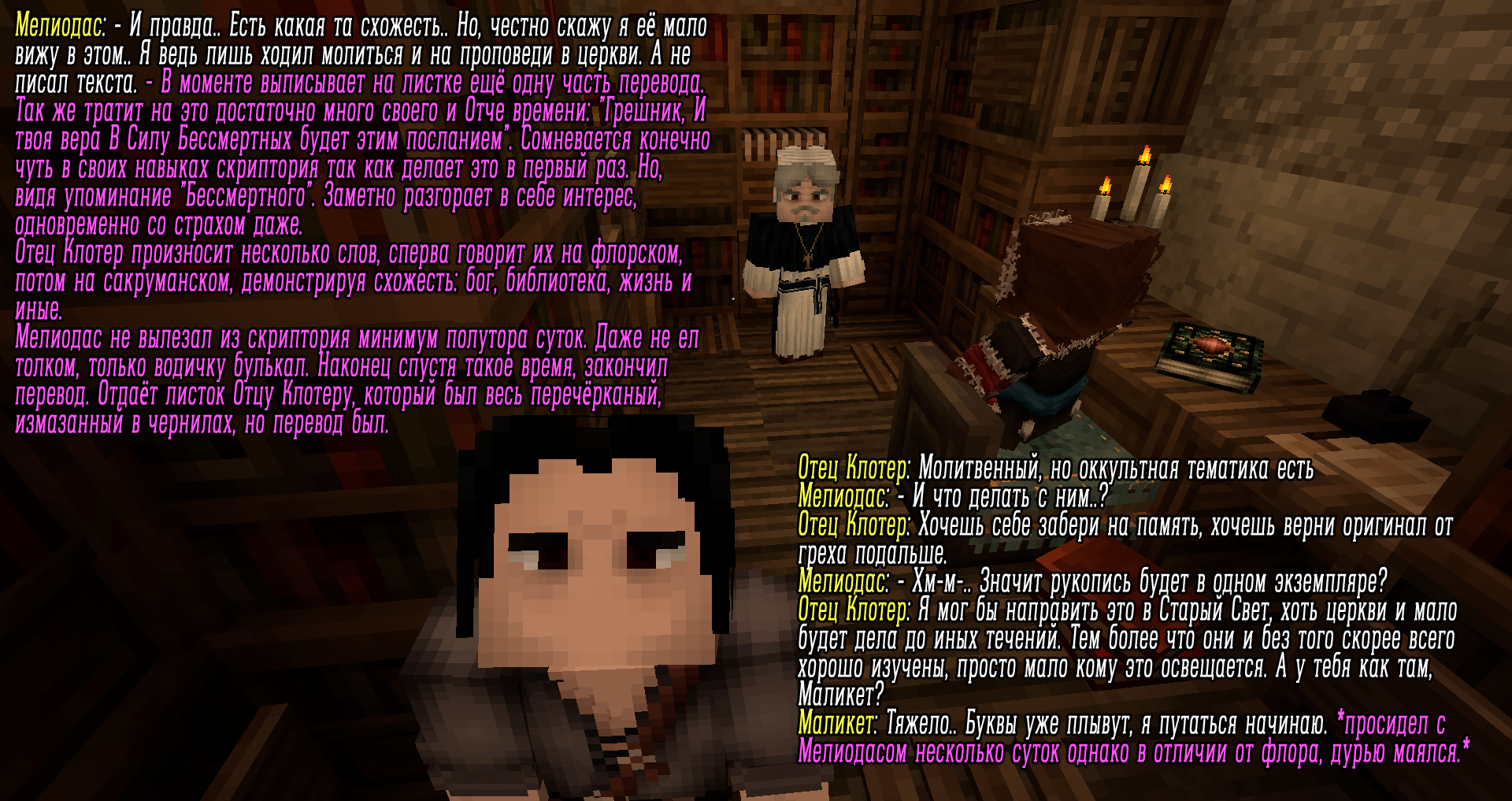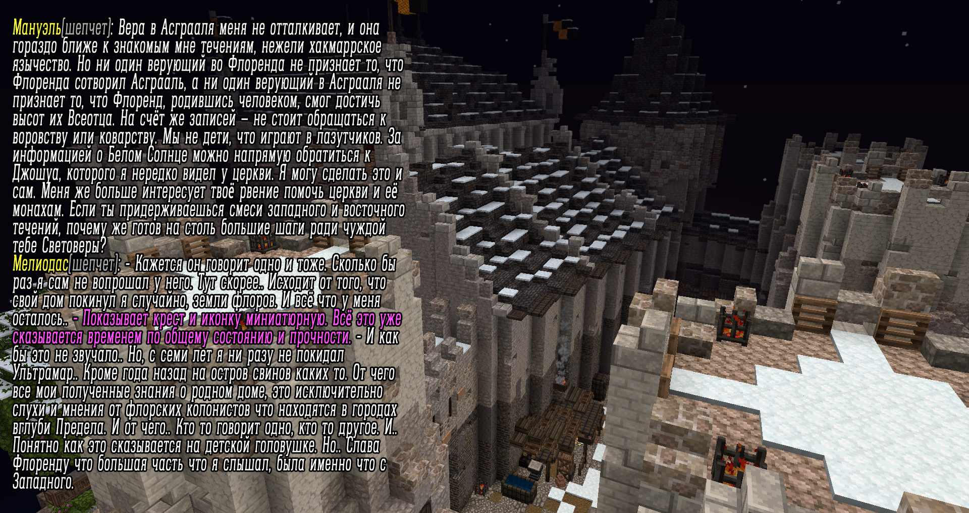 Более точное понятие можно ещё описать так - юноша, всю свою жизнь без изменений себе, будет отдавать время Западному Флорендству. А посему и вера в то, что одарен он магией был, также исходит из каких то целей Двух. Так что, стать Паладином Флорендства и нести клятву Богов своих, это цель, стоящая также на главном месте, если вообще не самое главное. Вера, в то, что магией наделён был юноша, бесспорно станет ключом. Молитвы, паствы и прочее прочее также станут ключом которые переодически может будет вести и сам Мелиодас во спасение душ грешных. По началу юноша, будет стараться навязать учения Западного Флорендства всем кому сможет, ведь именно это направление включает в себя лояльность к нелюдям. Утвердить своё имя Спасителя и как самого верного своим Богам. И только после этого, почти открыто показывать что является одарённый магией, несущий слово Божье во спасение. Цель этого, как можно больше переманить живых существ на праведный путь а не создание сект или чего то такого, любовь Отца Флоренда безгранична и он одарит ею каждого кто откроется ему. При этом всем, Мелиодас будет верить и знать, что создания иного происхождения, такие же как и он сам, будь то колдуны или проклятые создания, в той или иной мере одарены. А те, кто "проклят", заслужили это из-за своих тяжких грехов и тем не менее, кто откроется Богам, будет любим и им и Ими, ведь встанут они на путь праведный во спасение остатков души своей. Также, среди и других созданий иного происхождения, юноша будет проводить учения, веря, что вампир, оборотень, маг просто сбились с пути и он, тот кто поможет достичь блаженства на небесах, до последнего пока до конца существо не будет "отравлено" Сатаной. В этот момент и будет показана кара божья в виде самого Магматика, силы несущие разрушение, будут проявлены во имя очищения грешника, освободить его душу из уз плоти и отправить в Райские Сады забирая и отмаливая грехи. Попутно, Магматик в ещё большее уверование в том числе и коренных жителей Ультрамара, будет выставлять придорожные молитвенные кресты, дабы заблудший мог очистить себя и получить благодать. Попутно к этому, выстраивать и будет храмы не большие, аббатства на которых проходить паствы будут. В коих сам Мелиодас активно участие будет принимать и может даже, лично проводить чтение за здравие и упокой.