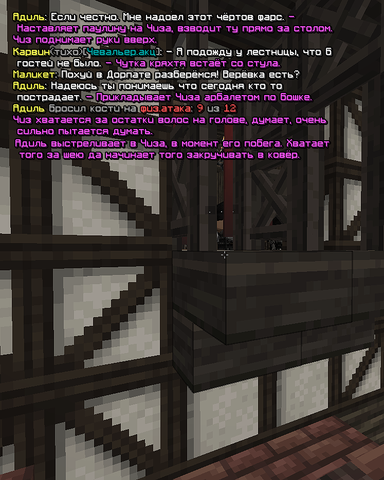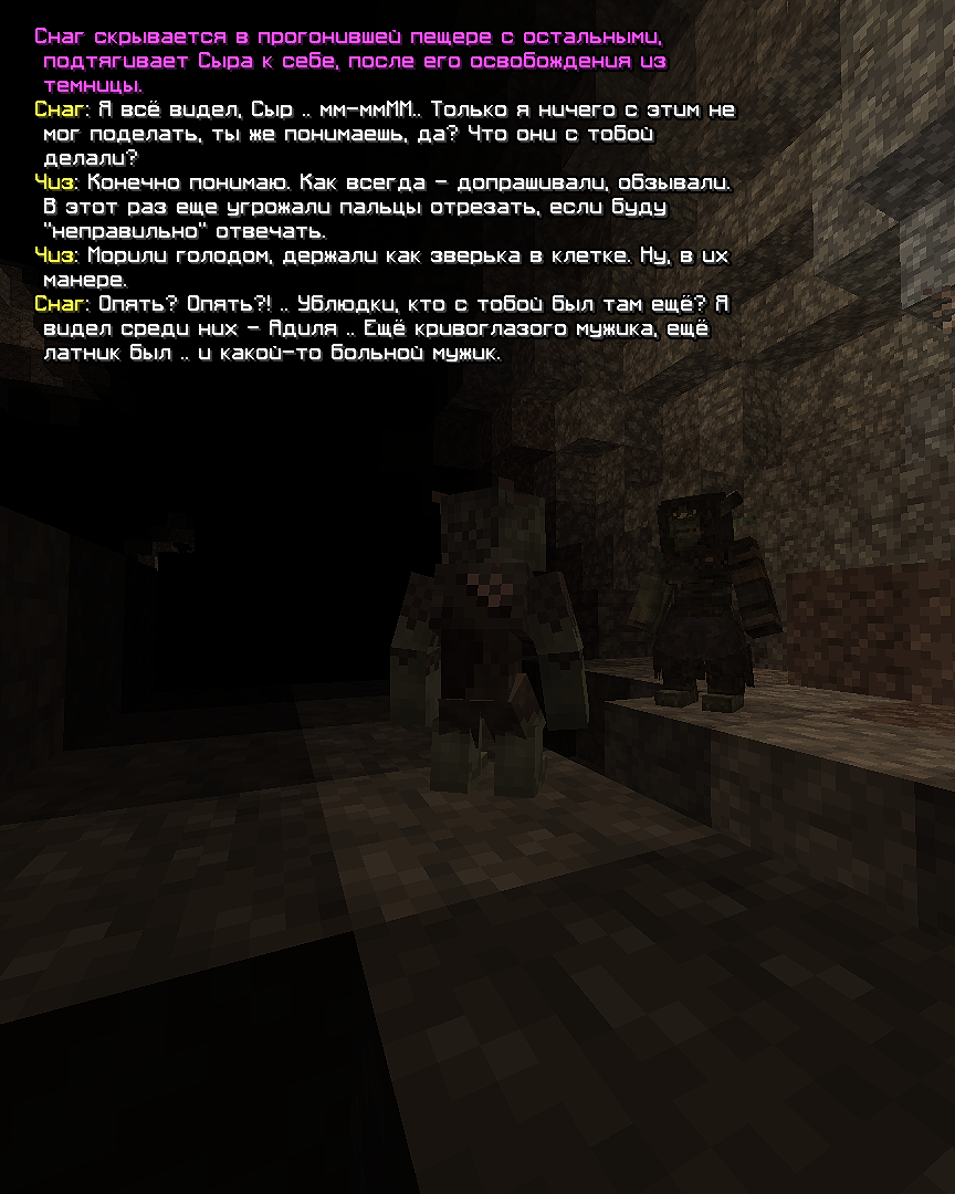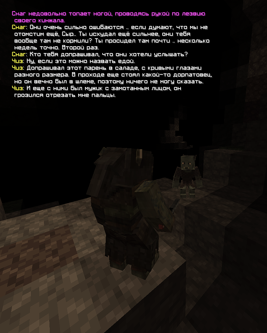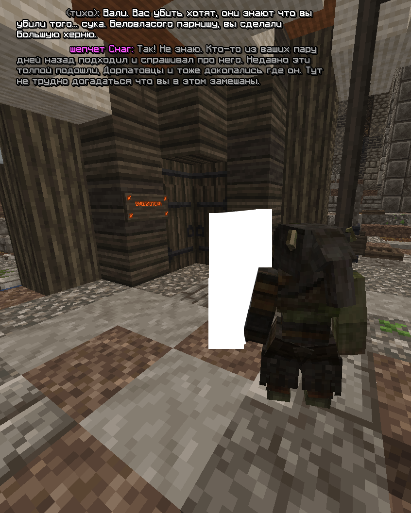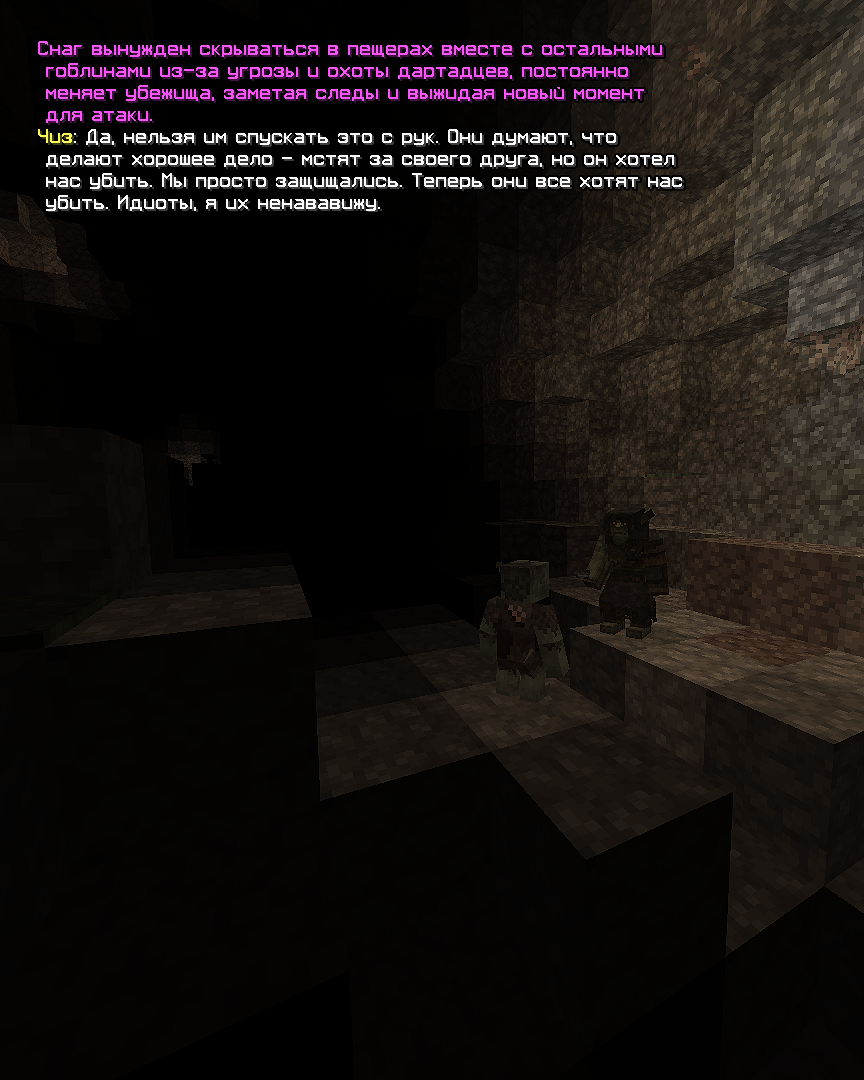 6. Описание мотивации с подробностями (детали, события и тд): Война гоблинов с Дорпатом продолжается. После убийства Чарли, гоблины пытались залечь на дно, прижившись на месяц в спокойном городе - Хендельспорт. Но их спокойствие продолжалось недолго, дартадцы уже снова вышли на их след, буквально не скрывая свою охоту на гоблинов, воруют одного из них в таверне Хендельспорта, заключая под стражу в темнице Дорпата, где его допрашивают, ищут логово гоблинов, Снага и его сообщников, чтобы по мнению гоблинов отомстить им. К счастью, после допроса Сыра отпускают и тот возвращается стучать Снагу, который и так лицезрел всю ситуацию в таверне, находясь на крыше и смотря через окна за похищением. Гоблины гонимые паранойей, пытаются максимально заметать свои следы, постоянно меняя убежища и скрываясь от дартадцев, но даже там за ними прискакивают два латника, что подтверждает их опасения.Продолжая своё противостояние с Дорпатом, они надеялись что Адиль также останется на их стороне, но не смотря на это, Адиль первый поспособствовал похищению Сыра из таверны. Они решаются на очередной ход, избавиться от того, кто занимался похищением Сыра - Маликетом, Адилем, больным человеком(личность ещё не установлена, но одно ясно - он очень болен) и ещё один латник.