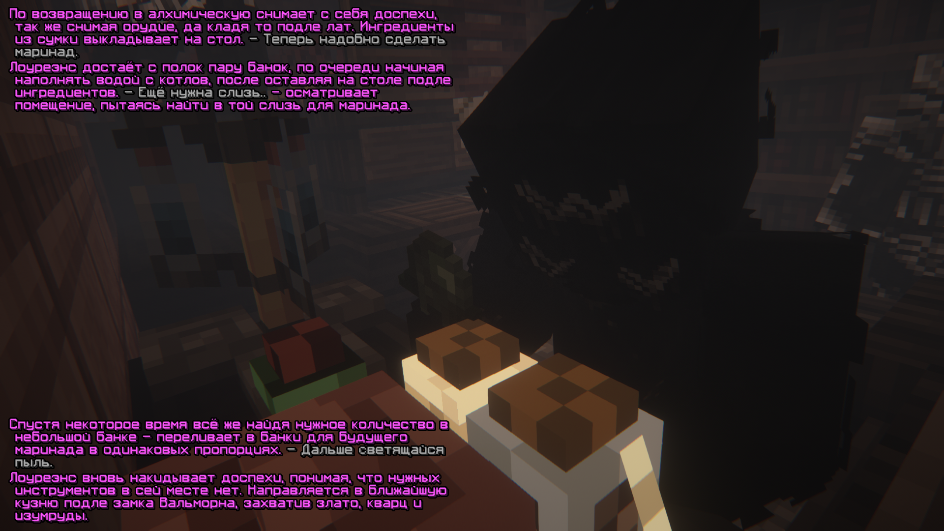 Новый проект (1).pngЭланор показывала чудеса алхимического мира: Как можно пережить огонь, как можно сравнить скорость своего бега подобно коням, а главное - как излечить людей. Видя всё это, Остерд воодушевился, с радостью начав изучать ремесло своей матери. Спустя время Остерду исполнился первый десяток. Он уже знал некоторые ингредиенты и мог подготавливать их для готовки будущих зелий: сок алого нароста, маринованный сверкающий ломтик арбуза, кроличьи лапки и сахар. После же он начал готовить свои первые эликсиры, конечно начав с исцеления. Надев перчатки и собрав созрелый алый нарост, когда плоды уже иссыхают и шелушатся, он убирает стебли в сторону, забирая с собой лишь плоды. После переходит к приготовлению самого зелья, имея уже заранее замаринованный сверкающий арбуз. Наполняет котёл водой, нагревая тот. Кладёт плоды нароста в ступку, после начинает пестикои растирать, добывая сок. Маринованный арбуз просто режет на доске, после выливает в котёл сок алого нароста, готовя основу. Закончив, добавляет так же и кусочки сверкающего маринованного арбуза, начиная варить. Каждый раз проверяет, готово ли зелье, не до конца понимая, сколько времени требуется ждать. Когда же эликсир принял нужный цвет - он убирает колбы перчатками, давая тем остыть, и пробует, надеясь не отравиться. Чувствуя лишь горький вкус не был уверен в его надёжности и не знал, на сколько удачно тот получился - лишь дальнейшее применения в нужных ситуациях покажет эффект.