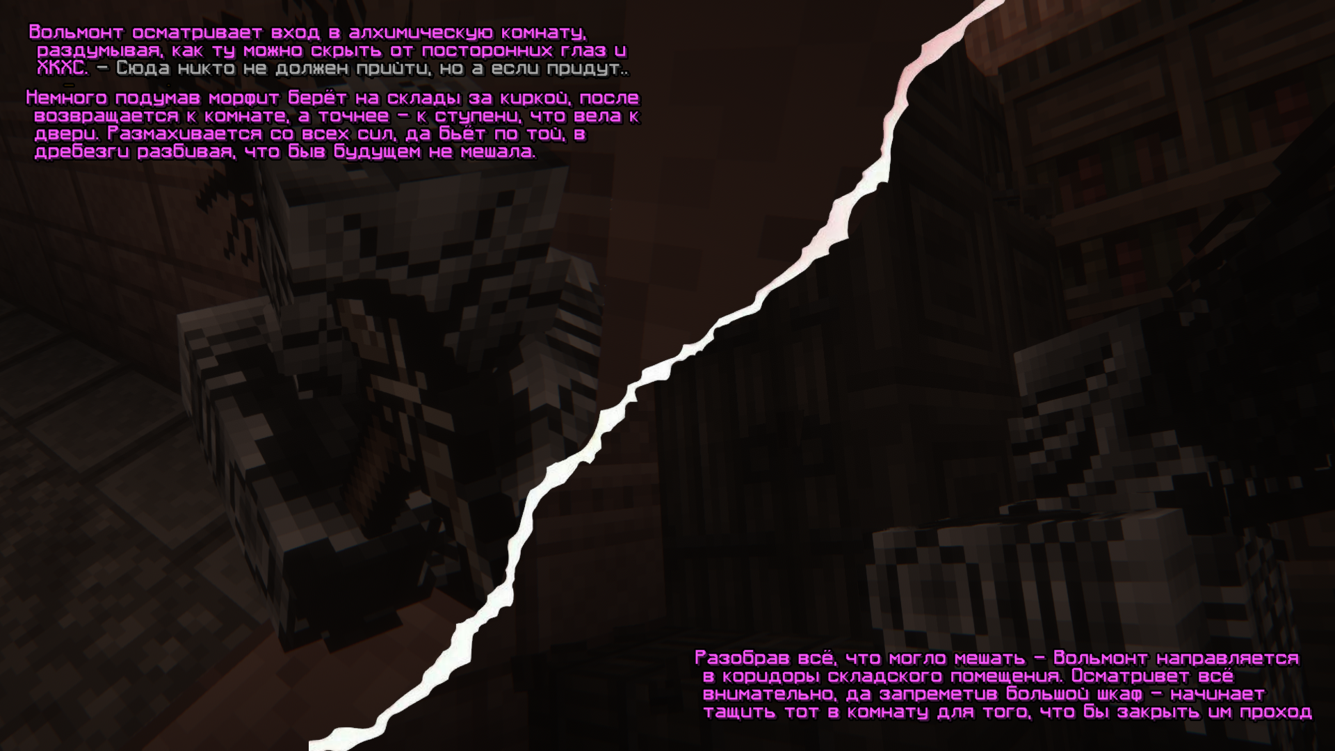 Шли дни, недели, месяцы. Остерд Вольмонт и дальше обучался алхимии, пытаясь по памяти воссоздавать все эликсиры, экспериментируя с теми на мелких животных, что находил в лесу. Со временем ингредиентов было всё меньше и вовсе стало не хватать, как и знаний, а потому сидеть без дело в хижине и смешивать зелья было нельзя - стоило найти работу. На тот момент морфиту было уже почти тринадцать лет, но он не мог просто продолжить работать в порту, боясь встретив там своего отца. Тогда то один из охотников позвал Остерда "заработать". Надобно было не просто покупать ингредиенты, но и что-то есть, а потому у морфита почти не было выбора. План был прост, но крайне рискован - алхимическая лавка стала целью опытного вора и его бестолкового сообщника. Рассказав азы грязного дела они отправились на дело.