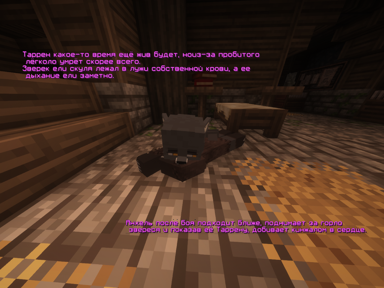 Стила лежит у гнилого бревна с раной на плече, а лик её застлан кровью. Анхель же обламывает первую попавшеюся ветку и на всей скорости бежит спасать сестру, проткнув бестию в живот, тем самым удерживая, попутно сестре крича добить тварь. Но заметив замах бестии, командует Стиле пригнуться, сам получает удар в ногу. После сестра добивает бестию камнем, раздробив той грудную клетку и часть головы, да падает без сил на тварь.