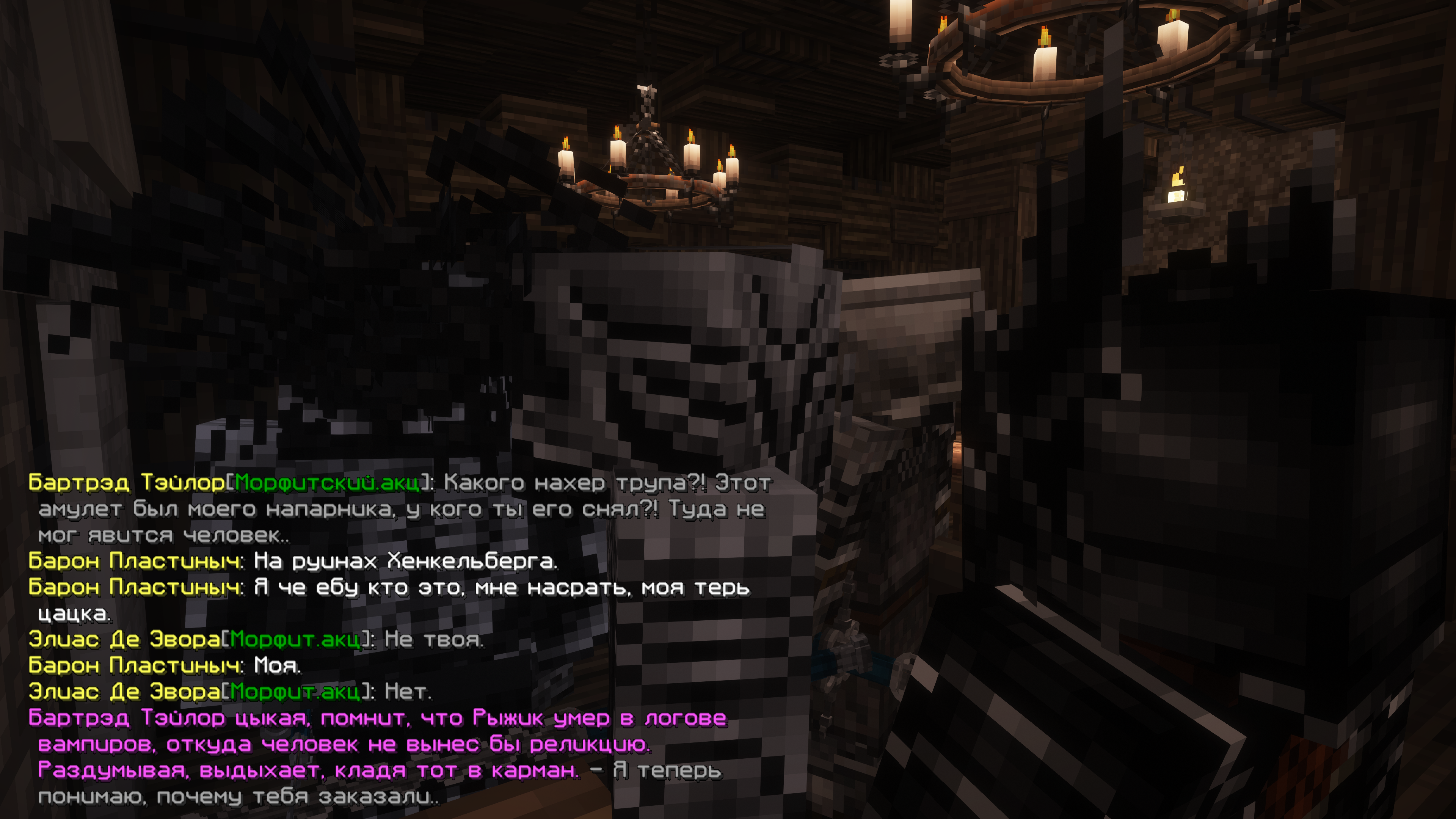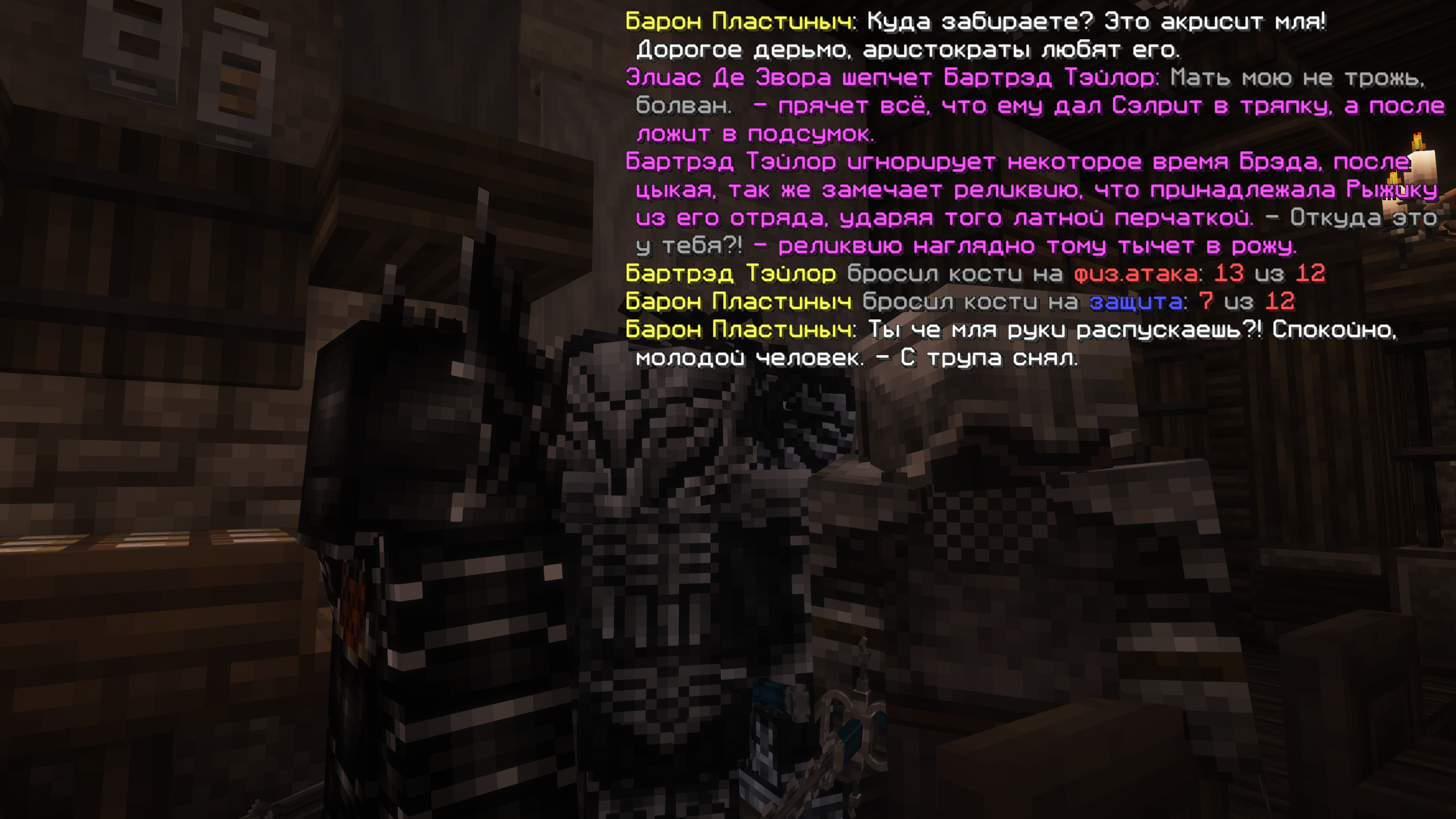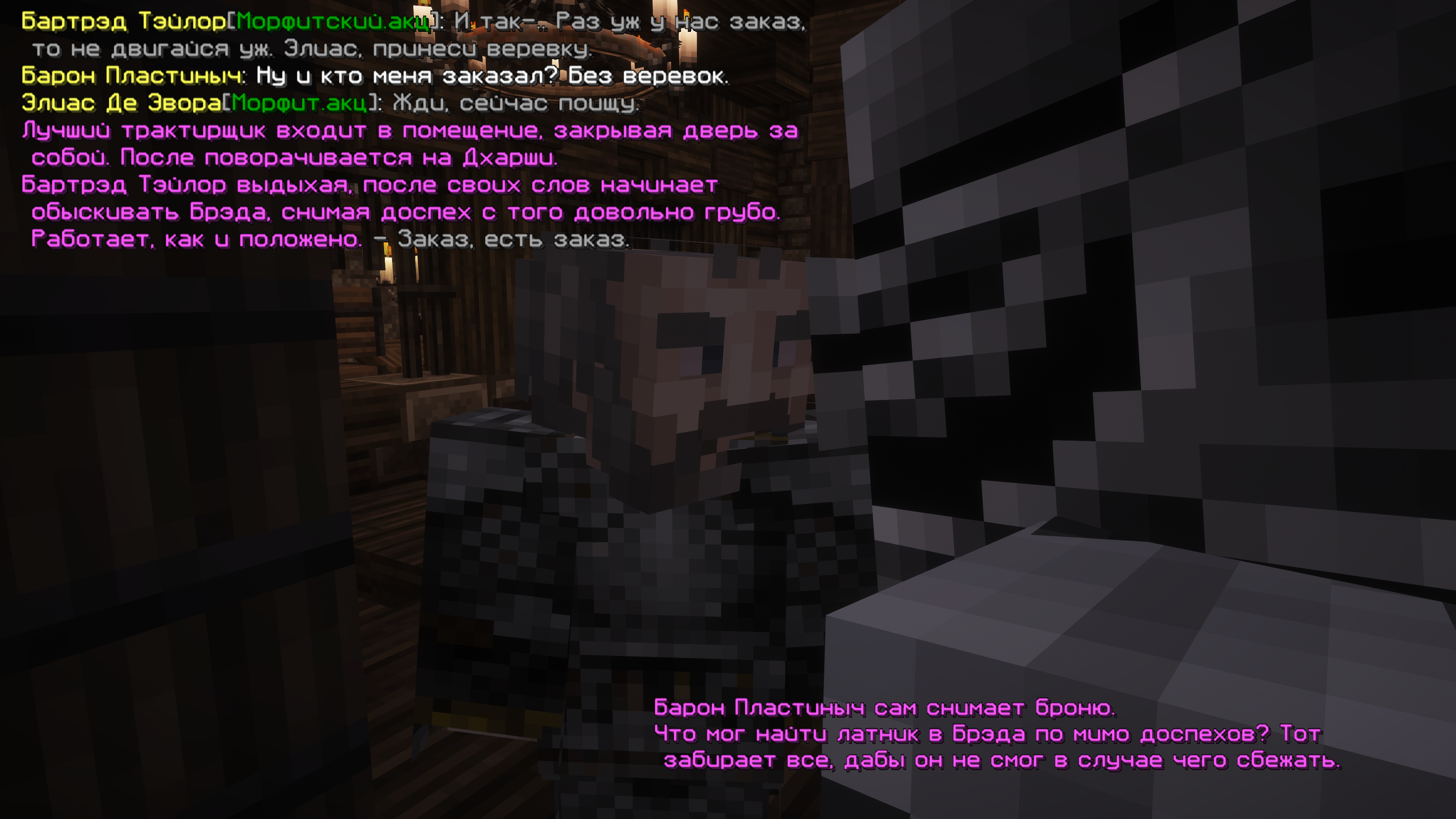 1746917358344.pngОкинув взглядом вновь людей, морфит наблюдал и слушал пьяные толпы, замечая группу шумных наемников, что явно радовались получению дорогого заказа. Заинтересовавшись подобным, он сразу же подошел к тем нагло начиная расспрашивать о них во время разговора. Хоть группе это явно не понравилось, предложение Сэлрита помочь за плату не дало его сразу же прогнать. Подсев к группе наемников, морфит начал решительно уговаривать тех взять его к себе, рассказывая что он охотник, да ещё и инженер, что явно понадобится любому отряду. По итогу разговора Сэлрит понял, что самый сильный из них Фрама, чем после тот и доказал, решая проверить "новичка" и сразится около таверны. Мужик был выше Сэлрита и даже больше габаритами, представляя серьёзного противника, ведь ранее морфит обычно дрался с бестиями и оружием в руках, но теперь же сражаясь в рукопашную он продержался некоторое время, вскоре выбившись из сил. Достойно оценив способности Сэлрита, наемники согласились принять того, рассказав про заказ и назначив следующею встречу.
