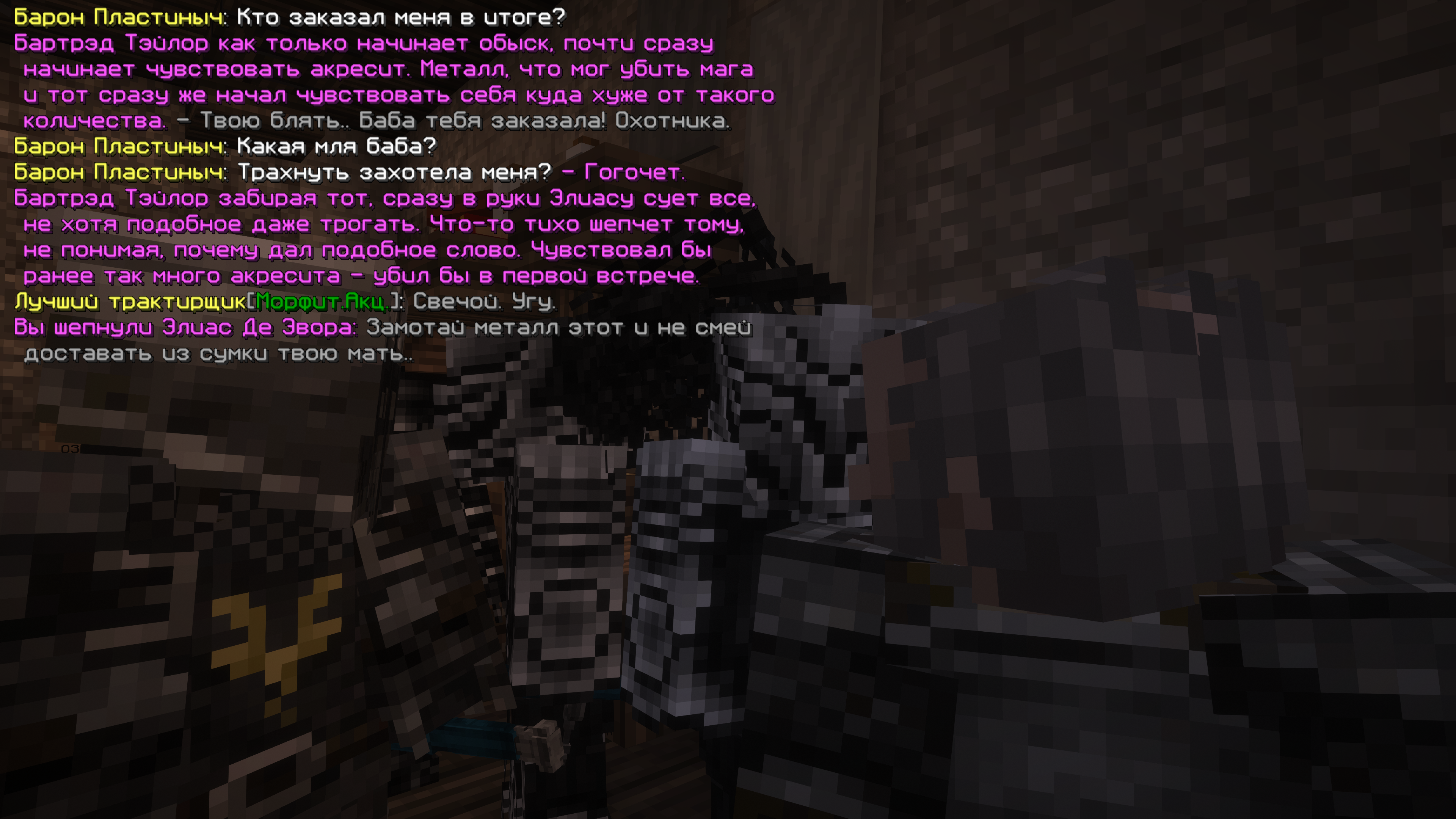 Распорядившись, те кто не умели стрелять - выступали неким щитом, что прикрывали от атак бестий и отвлекали тех на себя. Приступая к зачистке, все пошло, как и планировалось, пару нацхеров и вовсе были ранены ещё до начала битвы, но по итогу боя бестии смогли все таки пробить защиту, убив несколько "живых щитов" и лучников отряда. Попадать по подобным тварям в бою было той ещё задачей, ведь они были быстрее и сильнее прошлой нечисти.