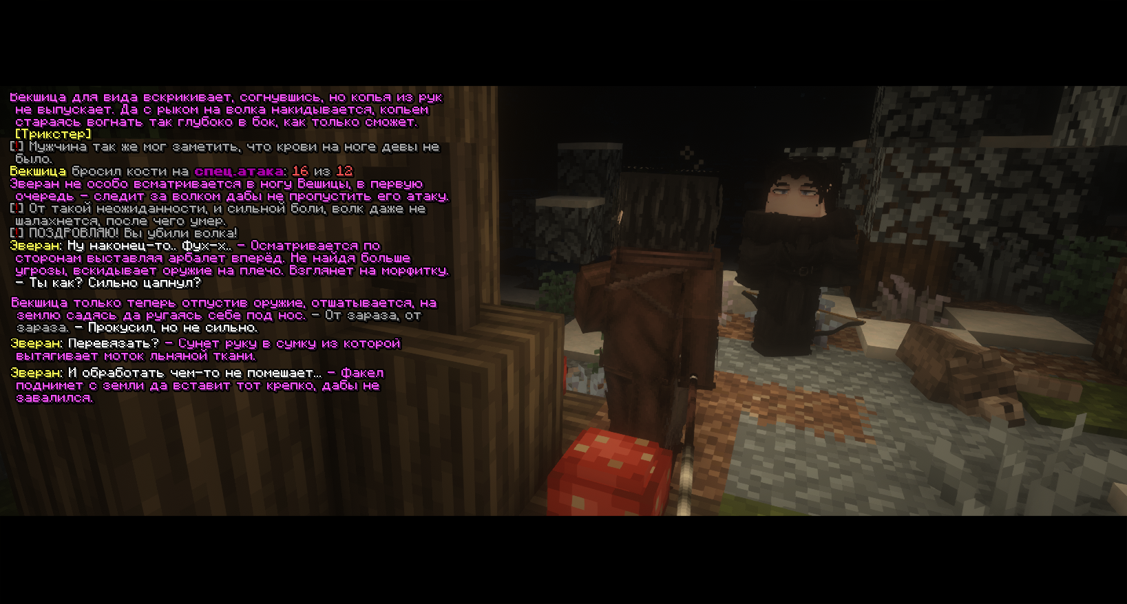 Сильные стороны: Благодаря своему воинственному прошлому, обучен главным основам: стрельбе из лука, арбалета, владение холодным оружием. А после, познания и умения во врачевании и алхимии заменили война и стали его главными ремеслами, что помогают ему зарабатывать на жизнь.