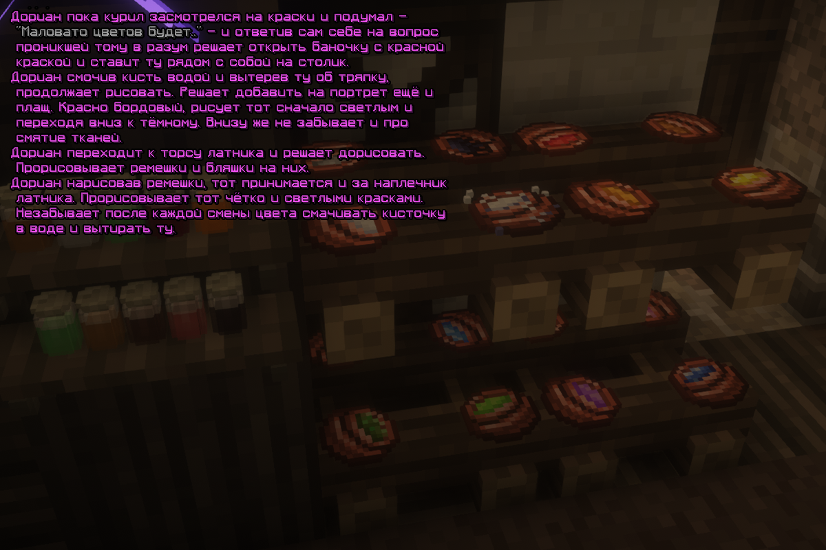 Поселившись в одной из далёких деревень Флорендвеля Дориан решает прийти к искусству. Накопленные деньги с рыцарства решает накупить красок и начать рисовать картины. Хоть с самого начала он и рисовать натюрморты, навыки того развивались. Малу по малу переходя с натюрмортов, на окна, с окон на пейзажи, а с пейзажей на обычную деревню. Хоть его картины и не собирали популярности, а лишь оценки местных жителей, ему нравилась эта спокойная жизнь поодаль от битв и шумной жизни.