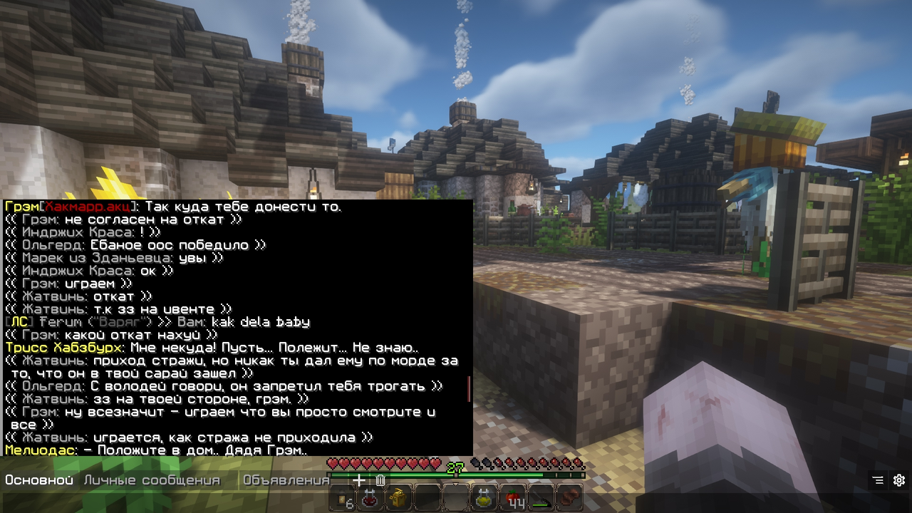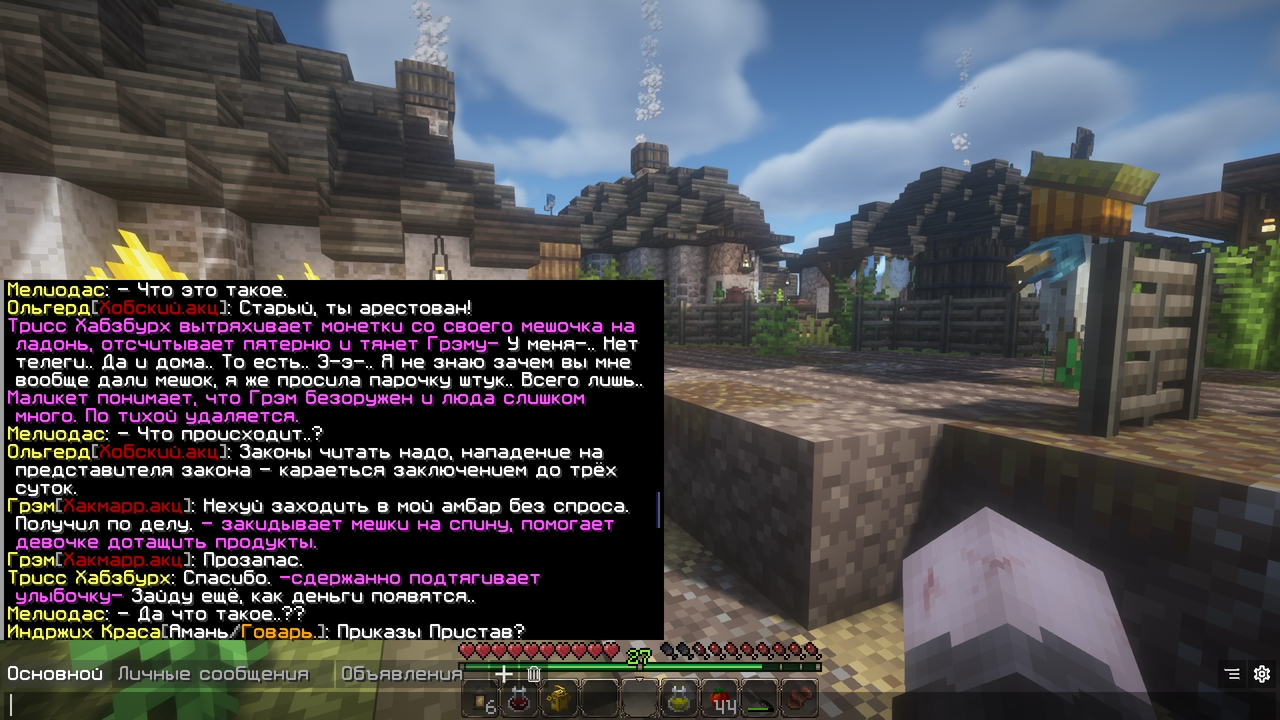 Подробности: Стоял играл у себя в амбаре с Мелиодосом и еланкой, продавал урожай. Приходит Ольгерд как к себе домой и ворует мою морковку. Я дал ему пиздюлей - приходит сразу же стража мол я арестован, но позже откатывают из за ивента. Я не согласен с таким решением и желаю чтоб игрок понес наказание а так-же продолжить ситуацию